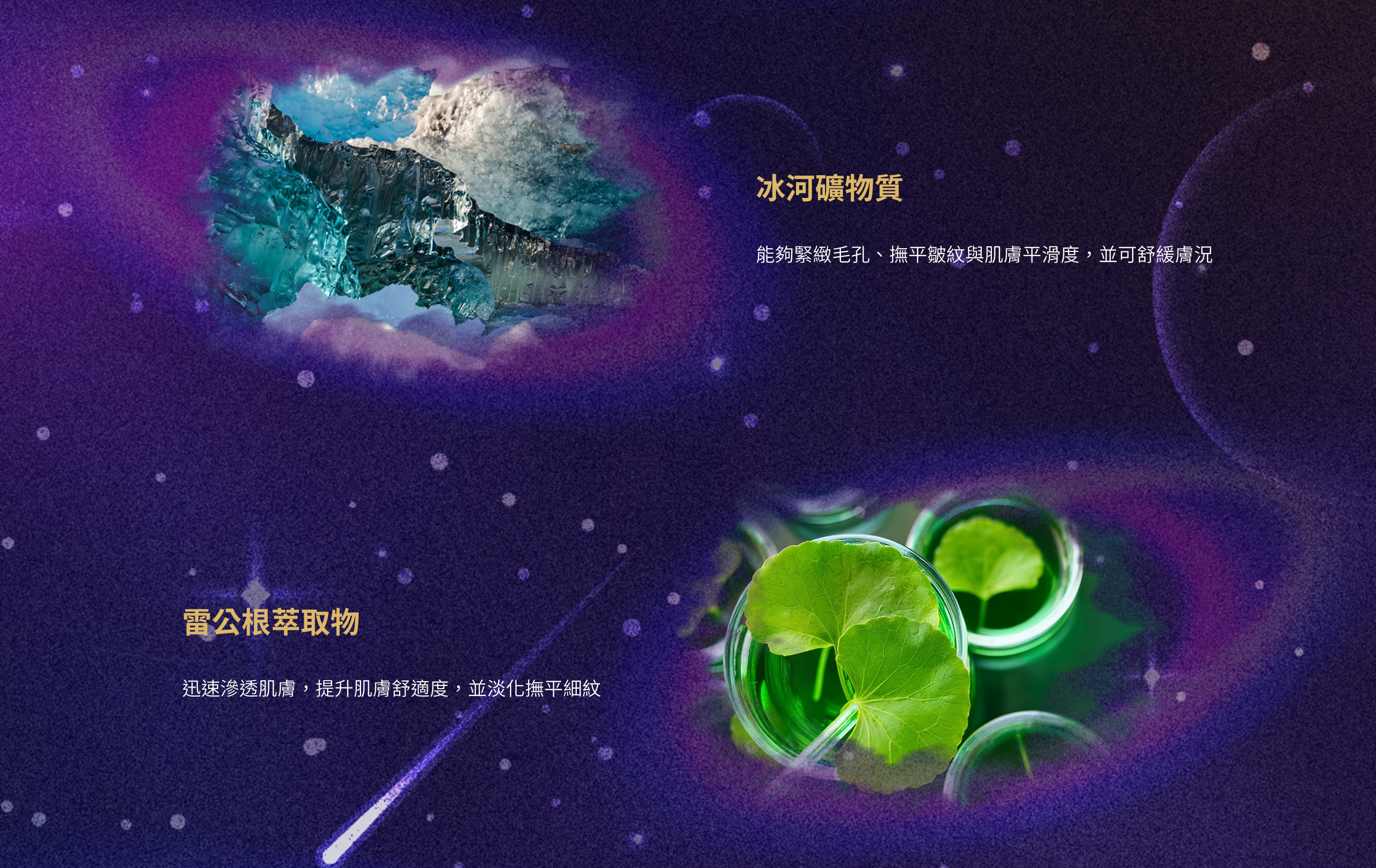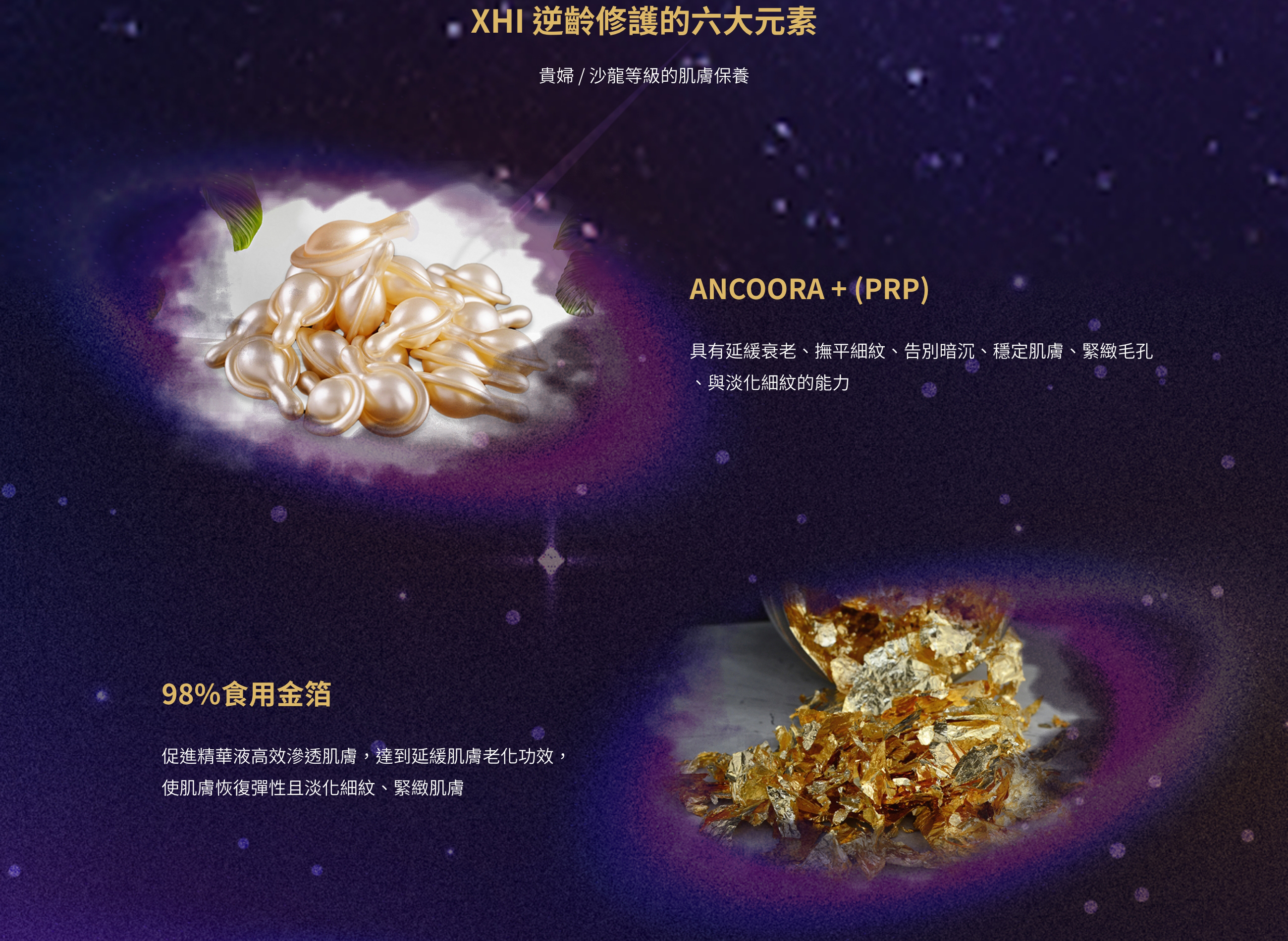 保濕潤澤、淨白透亮、延緩衰老、撫平細紋、改善暗沉,讓肌膚呈現最初的光采